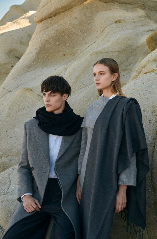To provide warmth and softness, we once make raw-silk into feather-like shape, then using a cashmere-like manufacturing process to make scarves.