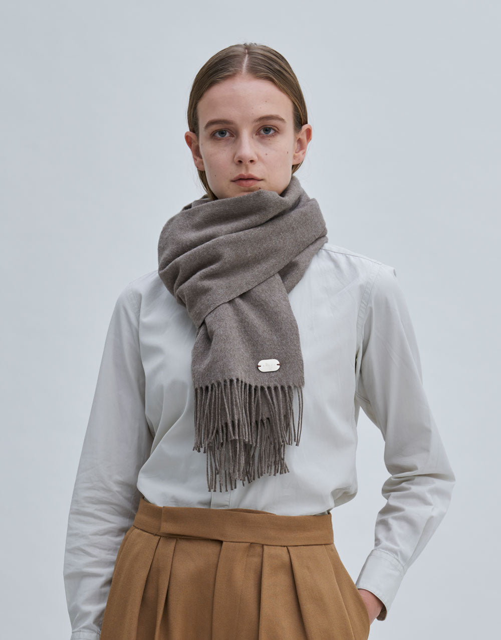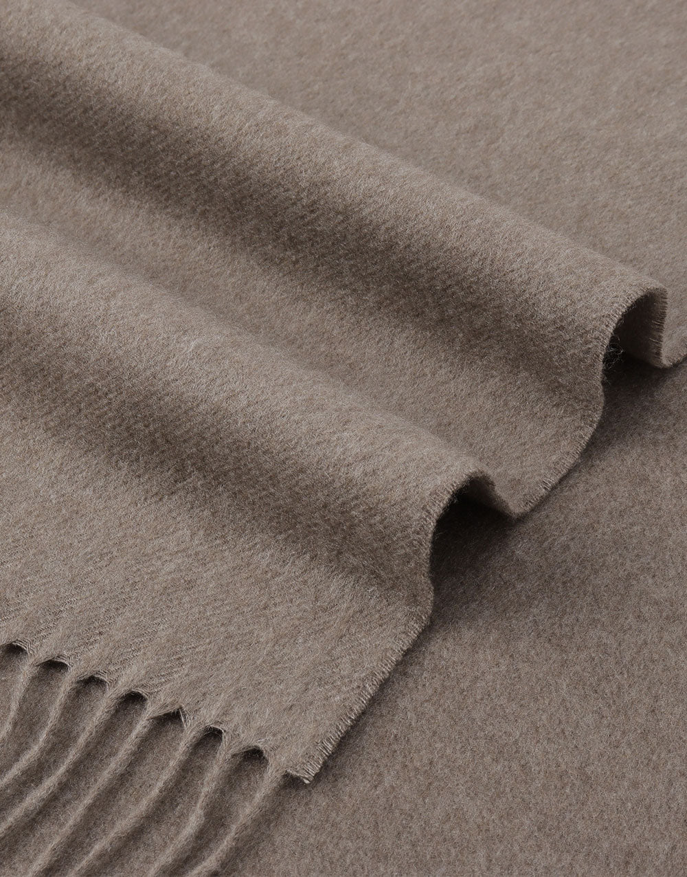 This silk scarf has a cashmere-like appearance with an elegant sheen.